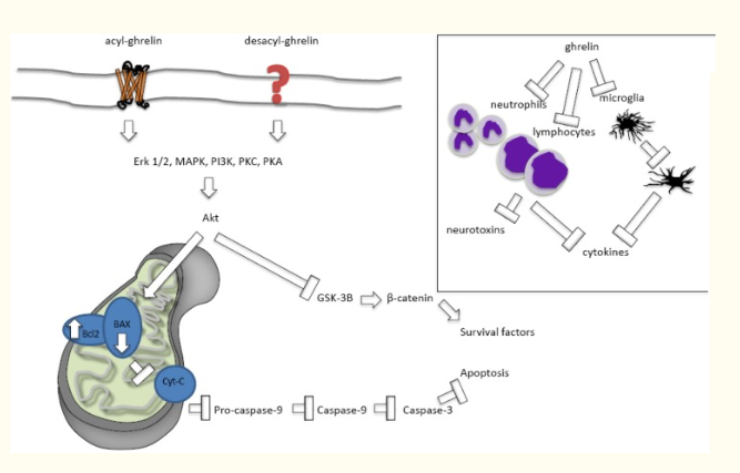 Животные модели инсульта используются для исследования способности GHRP-6 защищать нейроны и другие клетки центральной нервной системы от последствий плохого кровоснабжения. Оказывается, GHRP-6 не только защищает мозговую ткань во время острого инсульта, но и может фактически спасать от дефицита памяти после инсульта, если введение пептида своевременное [4], [5]. Похоже, что грелин и его аналоги подавляют апоптоз (запрограммированную гибель клеток) и уменьшают воспаление в мозге, защищая нейроны как от их генетического программирования, так и от окружающей среды после инсульта.
