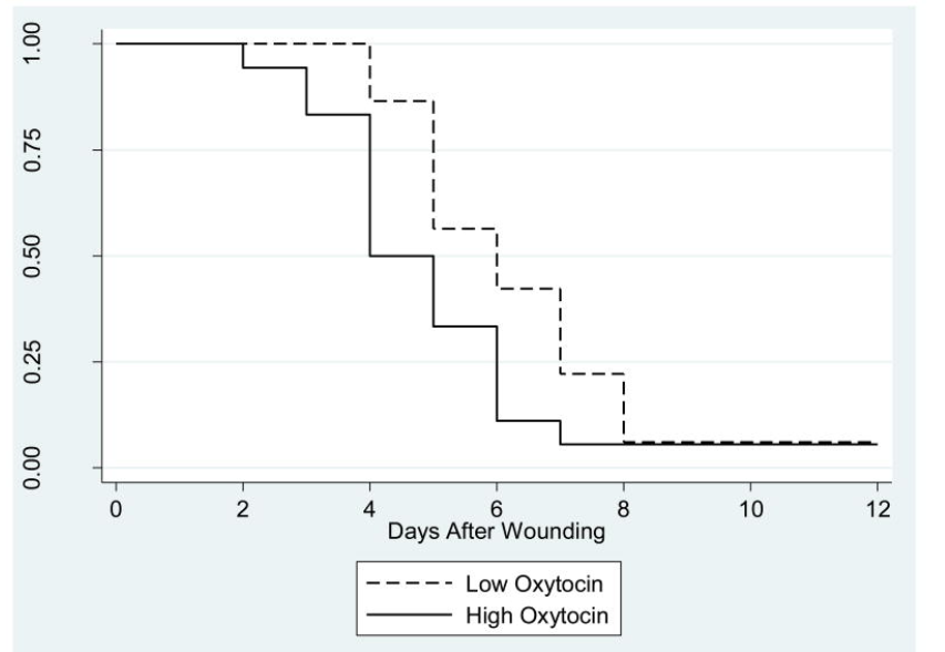 Окситоцин на самом деле может модулировать воспаление посредством воздействия на определенные воспалительные цитокины. Интересный эксперимент, изучающий скорость заживления ран у 37 пар, показал, что социальное взаимодействие, которое привело к более высоким уровням окситоцина, на самом деле увеличило скорость заживления ран. Чем выше уровень окситоцина, тем выше скорость заживления ран [1]. Аналогичное исследование показало, что враждебность в межличностных отношениях, особенно среди пар, может снизить скорость заживления ран на целых 40%. У этих пар также наблюдаются более низкие уровни ИЛ-6, фактора некроза опухоли альфа и ИЛ-1бета в месте раны [2].