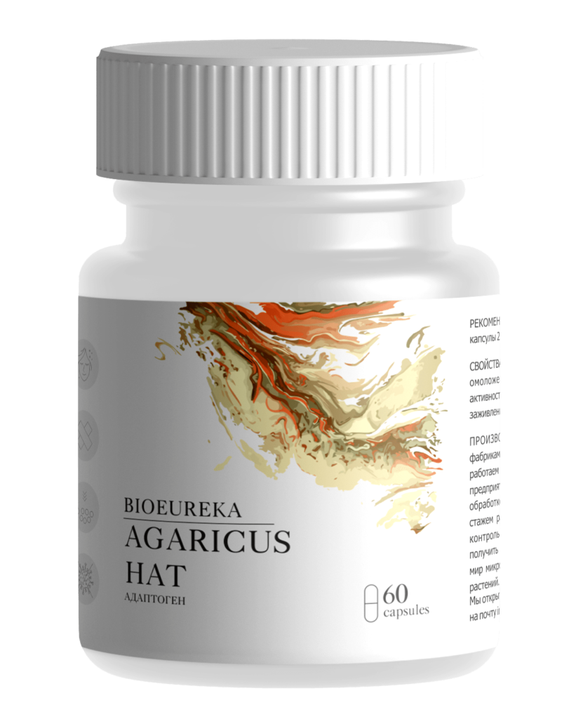 Предложенный продукт произведен фармацевтической компанией Bioeureka. Выпускается в капсулах. Эта форма наиболее удобна для использования. В состав препарата входят: экстракт молотого агарика бразильского, желатин (оболочка). Дозировка — 450 мг. В фармацевтическую банку с системой контроля вскрытия помещено 60 капсул с порошком. Делая заказ препарата на сайте или приобретая товары по телефону, нужно учитывать необходимое количество капсул на курс приема.