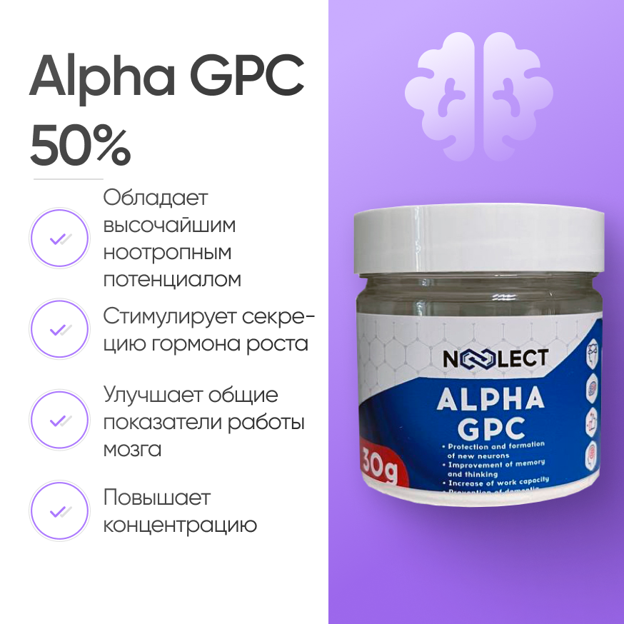 Подводя итог, Alpha-GPC — один из самых эффективных бустеров памяти и когнитивных функций. Он воздействует на естественные метаболические пути и имеет высокий профиль безопасности. У здоровых людей он повышает работоспособность и способствует достижению оптимальной физической формы без побочных эффектов.