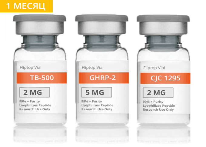 Курс состоит из трех пептидов: GHRP-2, CJC1295 и TB500.