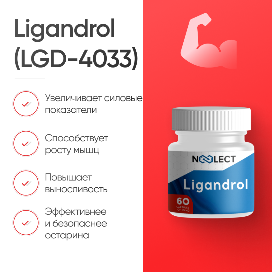 LGD-4033 используется для увеличения мышечной массы и проработки ее рельефа. Препарат воздействует на анаболические рецепторы избирательно, увеличивая мышцы, но не затрагивая простату и сальные железы. Лигандрол стимулирует рост мышц, дает их прирост до 7 кг за месяц, но при этом снижает количество подкожного жира. Прием препарата не приводит к остеопорозу, гинекомастии, увеличению простаты и высыпаниям на коже, так как является препаратом нового поколения.