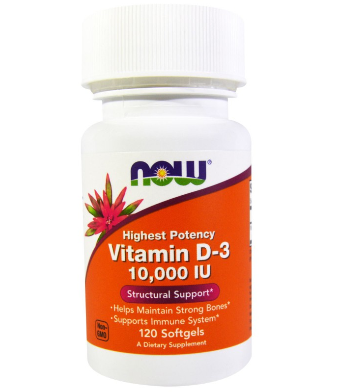 NOW Foods, высокоактивный витамин D3, 10 000 МЕ, 120 капсул