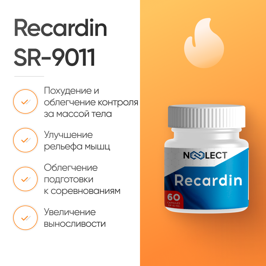 Фармакологический эффект применения рекардина основан на нормализации так называемых циркадных ритмов. Обмен веществ в организме подвержен периодичности — он замедляется вечером и ночью, а ускоряется днем. Суточные ритмы активности регулируются многими механизмами — в том числе, и теми, которые запускает прием Rev-Erb. Селективным модулятором Rev-Erb как раз является рекардин SR-9011. Его активация в организме увеличивает показатели основного обмена, ускоряет расщепление жирных кислот и глюкозы. При этом указанная пищевая добавка является безопасным катализатором обмена веществ, она не вмешивается в работу эндокринной системы, не влияет на синтез гормонов надпочечников, щитовидной и поджелудочной железы, не нарушает естественный метаболизм.