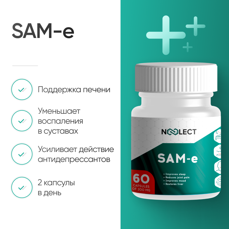S-аденозилметионин (SAM, SAMe, SAM-e, адеметионин) — мощный гепатопротектор с ярко выраженной антидепрессивной активностью. Проявляет детоксицирующее, регенерирующее, антиоксидантное и нейропротекторное действие.