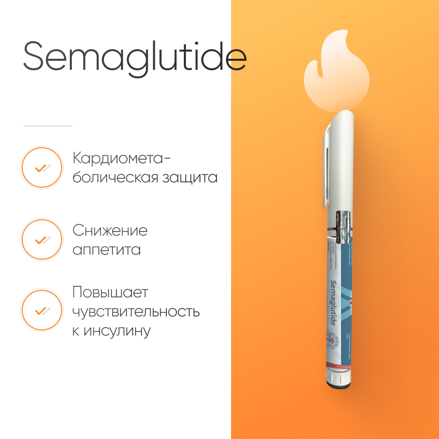Употребление препарата semaglutide снижает риск развития больших сердечно-сосудистых событий у пациентов с сахарным диабетом 2 типа и высоким сердечно-сосудистым риском — в качестве дополнения к стандартному лечению сердечно-сосудистых заболеваний.