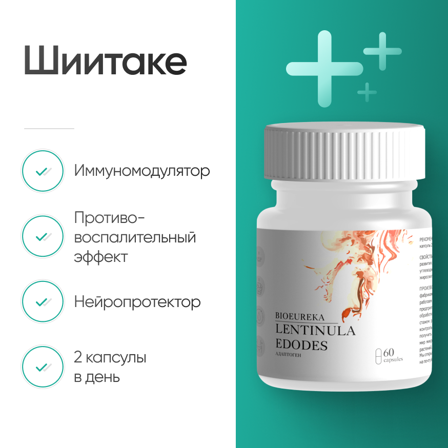 Состав: порошок гриба Шиитаке, желатиновая капсула