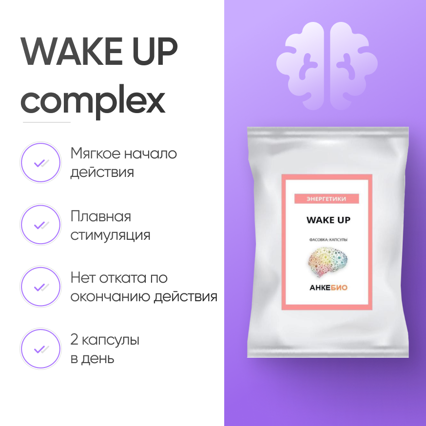 Комбинация кофеина с теакрином WAKE UP complex предназначена для людей, которые хотят добиться более длительного и выраженного стимулирующего эффекта, но не хотели бы принимать мощные синтетические психостимуляторы из-за риска побочных эффектов.