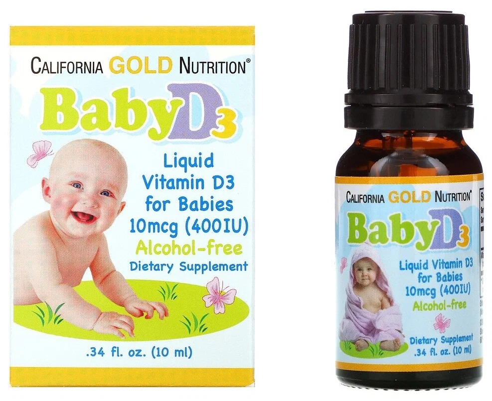 California Gold Nutrition, жидкий витамин D3 для детей, 10 мкг (400 МЕ), 10 мл (0,34 жидк. унции)